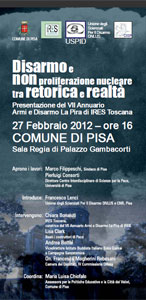 Lo scorso 27 febbraio a Pisa, a Palazzo Gambacorti, è stato presentato l’ultimo Annuario, con la partecipazione di numerosi esperti. E’ intervenuto anche Roberto Del Bianco, webmaster di questo sito, che ha illustrato le iniziative di IPPNW e IPPNW-Italy in merito all’azione di disarmo nucleare.